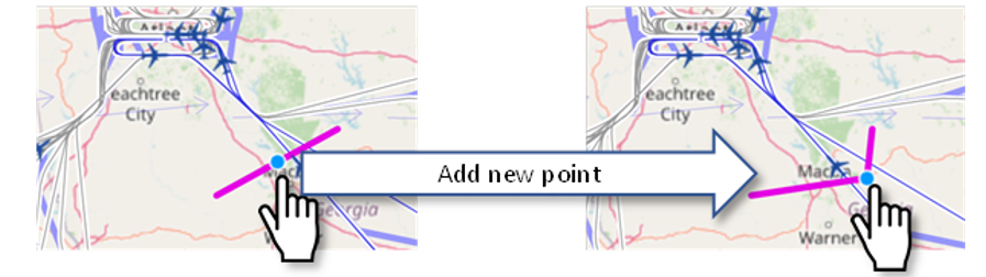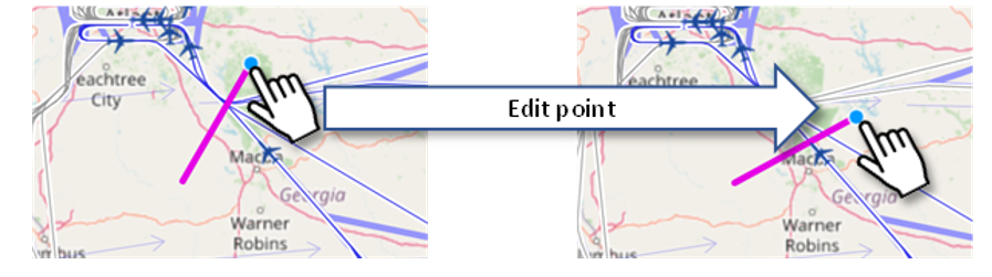 Filters can be modified directly on the map in several ways. Click-and-drag to EDIT points: