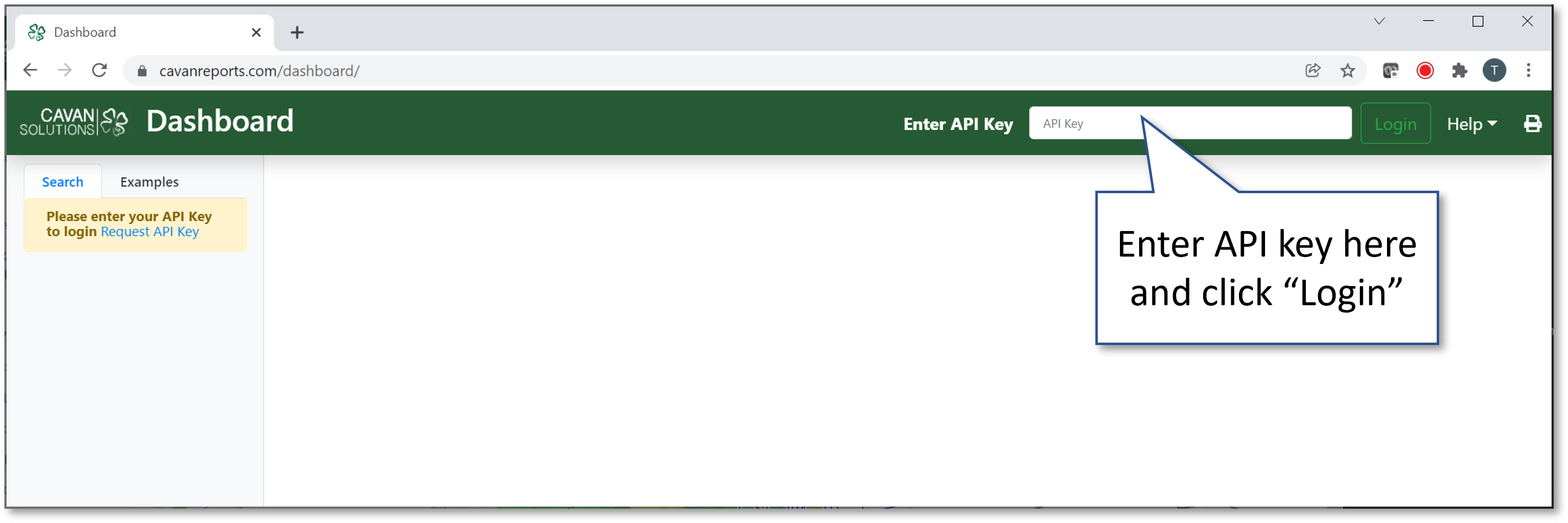 Access to the Dashboard requires an API key, which can be requested by contacting reports@cavansolutions.com.
